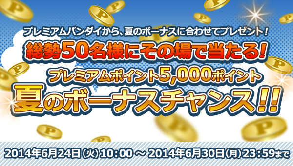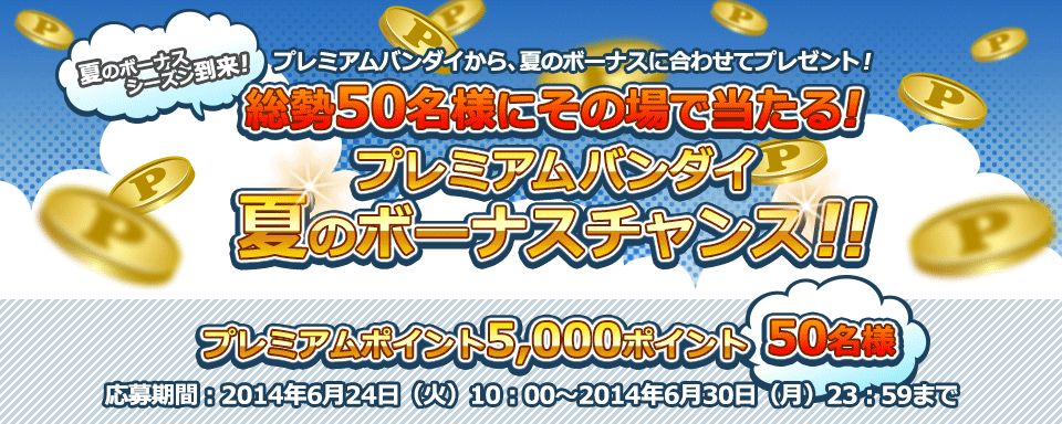 ・プレミアムバンダイ会員登録後、2014年6月30日(月)23:59までにお申し込みいただいた方がキャンペーンの対象となります。