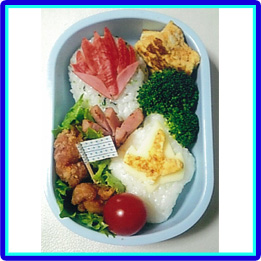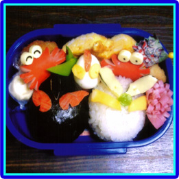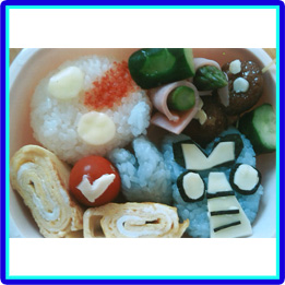 毎日とびはねている息子のように、ウルトラマンが飛び出しているお弁当にしました。ピグモンも見守っています。 |