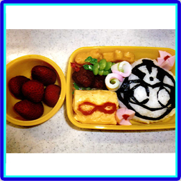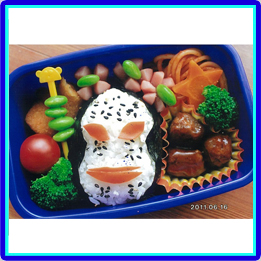 娘の遠足でおねだりされ、初挑戦しました。キャラ弁をつくったことがなかったので、遠足の1週間前はお弁当のことで頭がいっぱい。大好きなゼロと陛下をとても喜んでくれて私にとっても記念になりました。 |