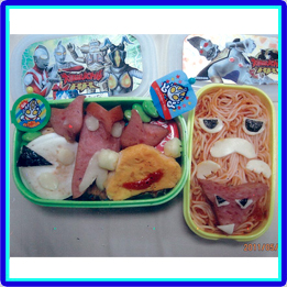 ウルトラセブンとピグモンの仲良し弁当です。 |