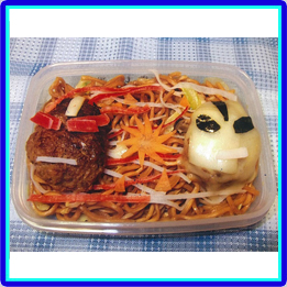 時間無くてもショップで売ってるものを使えば簡単にウルキャラ弁。 |