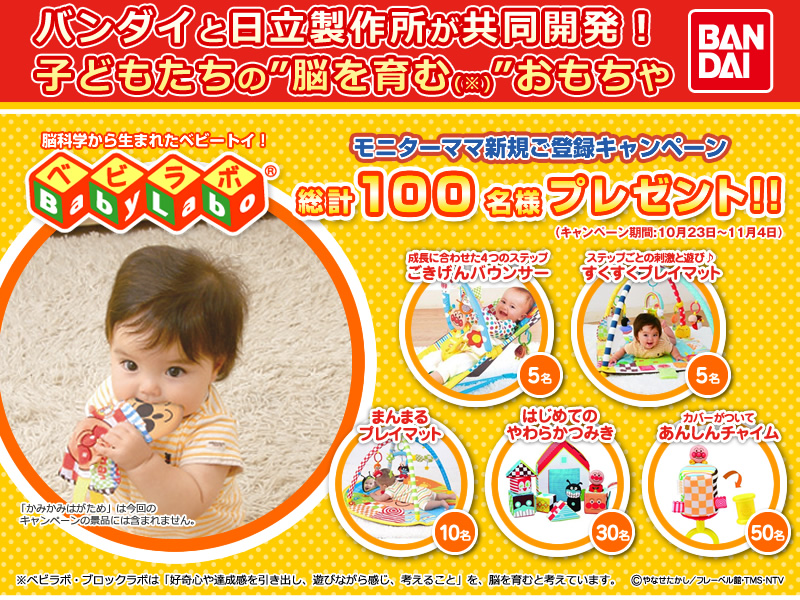 応募にはプレミアムバンダイ会員登録とモニターママのご登録が必要です。
