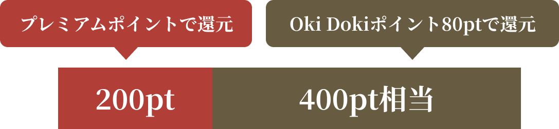 • ※記載のポイントは獲得したOki Dokiポイントをすべてプレミアムポイントに移行した際のポイントとなります。