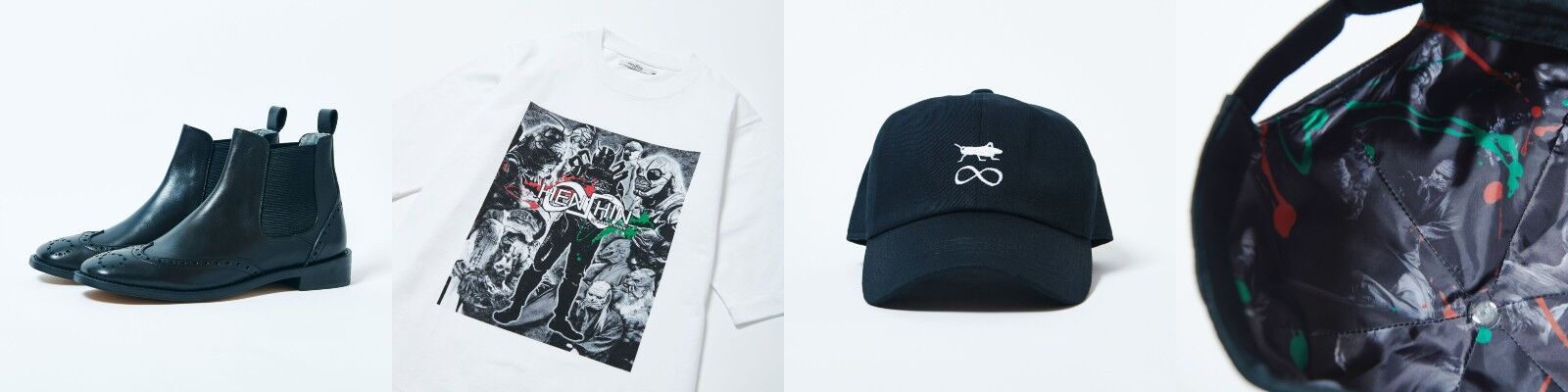 ―ありがとうございます。Tシャツは厚手の生地を使っているのでへたらず、長く着ていただけると思います。このブーツは作中で50年前と現代を行き来することから着想を得て、1970年代に流行っていたサイドゴアブーツを採用しました。つま先の装飾のメダリオンは、親一人、子二人の大小ドットになっていて、創世王と仮面ライダーBLACK SUN&仮面ライダーSHADOWMOONの関係を表現しています。インソールには白石監督に描いていただいた「∞」のマークを入れています。この「∞」デザインはTシャツとCAPにも採用させていただきました。