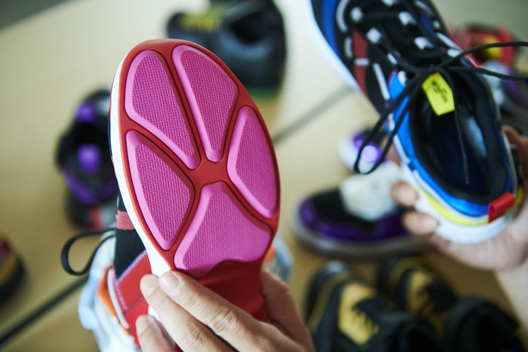 ―実は、高岩さんの撮影会でライダーキックのポーズを取っていただく際、仮面ライダーの足跡を靴底に貼っていたのを見ていて、それから着想を得て生まれたスニーカーなんですよ。