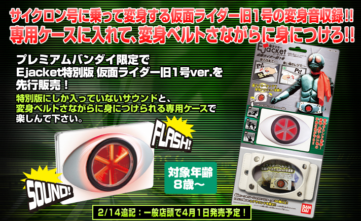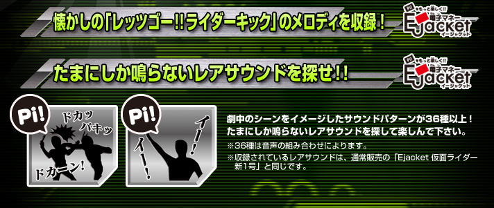 仮面ライダー40周年を記念して、仮面ライダー旧1号の変身音を収録したEjacket特別版が登場!