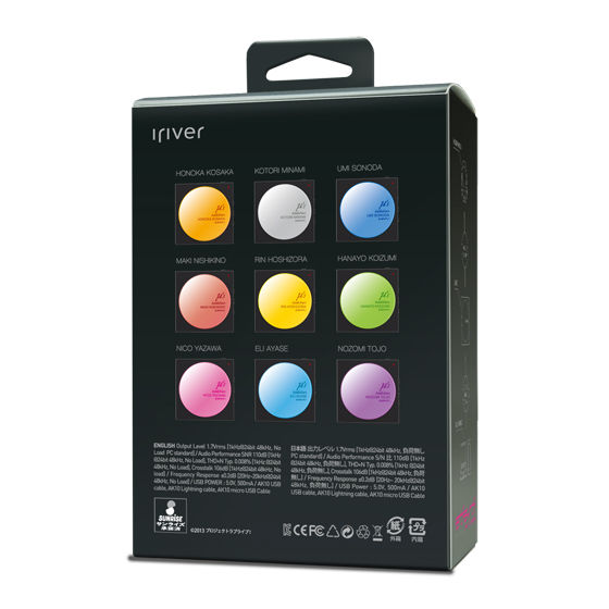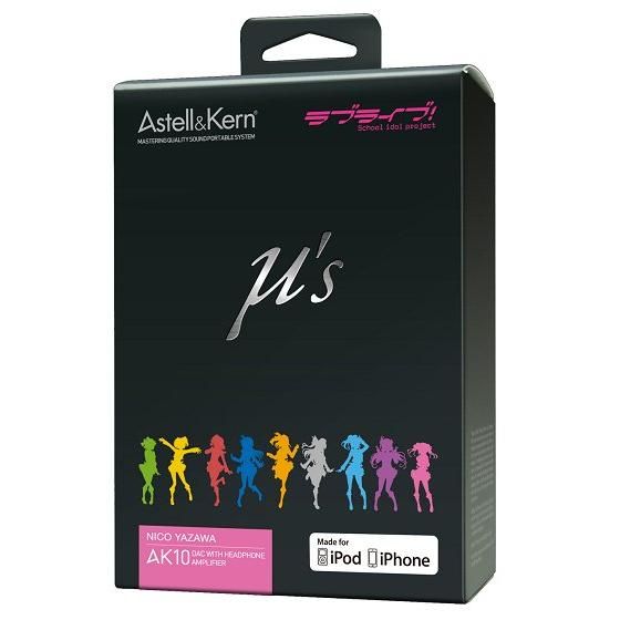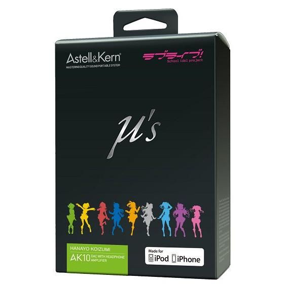 本商品はお一人様各キャラにつき2個までの購入が可能です。 「AK10」は、iriver社のハイレゾオーディオブランド「Astell&Kern(アステルアンドケルン)」の人気商品で、iPhoneなどのスマートフォンとのデジタル接続することにより、今話題のハイレゾ音源を最大96KHz/24bit(*CDは、44.1KHz /16bit) の高音質で楽しむことができるヘッドフォンアンプです。 ■「AK10」についての詳細はこちら Astell&Kern AK10 ラブライブ!エディション製品紹介ページ https://www.iriver.jp/products/product_102.php 【セット内容】 ・Astell&Kern AK10本体 ・専用Lightningショート ケーブル(約10cm) ・専用USBケーブル ・Android用micro USB (OTG Support)(※7月22日追記) ・専用バンド付レザーケース ・クイックスタートガイド ・保証書 *1:USB3.0ポートを介したUSB DAC機能をサポートしていません。接続機器のスペックにより再生される音楽が途切れる場合があります。 *2:Android製品に関しては全ての接続機器の動作を保証するものではありません。 本製品はiPhone/iPod Touch第5世代にプリインストールされている標準ミュージックアプリをベースに開発しております。 その他ミュージックプレイヤーアプリ使用の場合、全ての動作を保証するものではありません。 【サイズ】 商品サイズ :約54mm [W] x 54mm [H] x 13.2mm [D] / 51g パッケージサイズ:約96mm [W] x 136mm [H] x 49mm [D] / 267g 【発売元】 株式会社ランティス 【商品のお問い合わせ先】 アイリバーサポートセンター 月曜〜金曜 10:00〜18:00 (祝祭日および年末年始を除く) ナビダイヤル: 0570-002-220