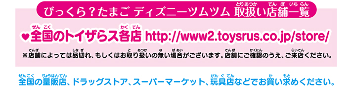 プレートマスコット入り入浴剤1個 ●入浴剤(浴用化粧料) 香り:ミックスフルーツの香り 色:黄色 容量:75g ●プレートマスコット プレートマスコットの種類は全部で15種類! (1)ミッキー、(2)ミニー、(3)ドナルド、(4)デイジー、(5)プルート、(6)プー、(7)ピグレット、(8)スティッチ、(9)ディズニー マリー、(10)エルサ、(11)オラフ、(12)バズ・ライトイヤー、(13)エイリアン、(14)ペリー、(15)マレフィセント ※いずれかひとつが出てきます。 ※マスコットの種類は選べません。 ●発売日 2015年7月14日(火)8時より、プレミアムバンダイにて販売開始 2015年7月上旬より、順次店頭販売開始 JANコード:4543112-96854-8人気のディズニーツムツムのキャラクターをラインナップした「びっくら?たまご ディズニーツムツム」が新登場! 入浴剤が溶けると、中からツムツムのキャラクタープレートが出てきます。 プレートマスコットは集めて楽しい全15種類!マスコットはボールチェーンを付けて身に付けたり、つなげて遊ぶこともできます。 入浴剤はミックスフルーツの香り、黄色のお湯です。 |