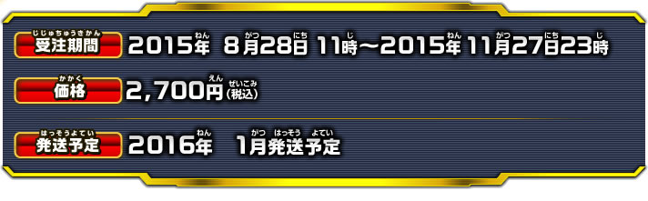 ※本商品は【2016年1月発送】分のお申込み受付ページです。 本商品は、2015年11月11日に発売となる「仮面ライダーデューク」と 「仮面ライダーナックル」それぞれを主役とした2つの物語が収録された Vシネマ『鎧武外伝』の第二弾のうち、仮面ライダーナックル版のストーリーに登場する 「マロンエナジーロックシード」と、変身ベルトDX戦極ドライバーに装着できる 「ゲネシスコアユニット」をセットにしたプレミアムバンダイ限定品です。 作中ではTVシリーズ同様、仮面ライダーナックル/ザック役を松田岳(まつだ がく)さんが演じ、 「仮面ライダーナックル ジンバーマロンアームズ」に変身します。 別売りの「変身ベルト DX戦極(せんごく)ドライバー」に、「ゲネシスコアユニット」と 「マロンエナジーロックシード」をセット。中央にはクルミロックシード(受注受付終了)をセット、 2つのロックシードが同時に開き音声が発動。 「仮面ライダーナックル ジンバーマロンアームズ」の変身・なりきり遊びが楽しめます。 「変身ベルト DXゲネシスドライバー」(別売り)にも対応しております。 また、ロックシードの背面のボタンを押すと発光し、収録されているザックと戒斗の台詞が鳴ります。 二人の掛け合いなど、多数の収録音声が楽しめます。 音声例:ザック「俺には守るものがある!犠牲を超えて、戦う価値がある!」 戒斗「強くなったな、ザック」※音声は一例です。 【受注期間】2015年8月28日(火)11時〜2015年11月27日(金)23 時(※1) 【発送予定】2016年1月発送予定(※2) 【対象年齢】3才以上 【セット内容】 ・DXマロンエナジーロックシード…1 ・ゲネシスコアユニット…1 【商品素材】 DXマロンエナジーロックシード:PC、POM ゲネシスコアユニット:ABS、PC、POM 【生産国】中国 ※1 準備数に達した場合、予定期間内であっても早期に販売を終了させていただくことがございます。 お届け時期を変更し、ご注文を承る場合もございます。 ※2 2016年1月中の出荷に努めさせていただきますが、 ご注文状況によっては、発送時期が多少前後する場合もございますので、ご了承ください。 お届け時期を変更し、ご注文を承る場合もございます。 ※本商品は、日本国内においてプレミアムバンダイ限定販売となります。 ※本商品は日本国外で販売する可能性がございます。ご了承ください。 ※本ページに掲載された商品写真・仕様は、開発中のものです。商品仕様等は予告なく変更になる場合があります。 プレミアムバンダイでは、2015年11月11日発売の鎧武外伝Blu-ray/DVDに登場する セイヴァーアローとザクロロックシードもセットで予約受付。