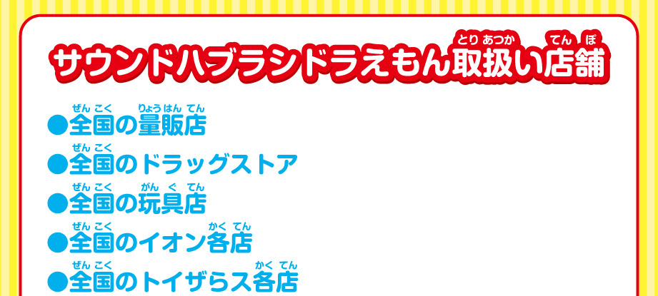 ・音声が鳴るハブラシスタンド…1個 ・こども用ハブラシ…1本 ・ハブラシ用デザインシール…1シート (デザインシール2枚+お名前保護シール2枚) ・テスト用ボタン電池(LR44)…2個 ●ハブラシは、別売りバンダイ商品のドラえもんハブラシ3本セットと同形状のため、それを購入頂いてのハブラシ交換可能です。 ●音声台座の電池交換の目安は1日2回使用で約2ヶ月間。市販のボタン電池LR44の交換で継続的に使用可能。 【使い方】 ボタン電池(LR44)をハブラシスタンドにセットします。 ハブラシスタンドからハブラシを抜くと約2分間かけ声とメロディがなります。 かけ声に合わせて歯磨きしましょう。 ●発売日 2015年11月25日(水)10時より、プレミアムバンダイにて販売開始 2015年11月下旬より、順次店頭販売開始 JANコード:4543112-95065-9【商品説明】 こどもが楽しく歯磨きするための音声が鳴るハブラシスタンドとハブラシのセット商品です。 ハブラシをスタンドから取ると、約2分間ドラえもん主題歌「夢をかなえてドラえもん 」のメロディが流れ、さらに大好きなドラえもんのかけ声で、上の歯の表側・裏側、下の歯の表側・裏側と歯磨き順を教えてくれて、磨き残しなく楽しく約2分間歯磨きできます。 すぐに飽きて歯磨きをやめてしまう子もこれでしっかり磨け、こどもたちのハミガキの習慣付けを助けます! ※日本大学 松戸歯学部 小児歯科 前田隆秀名誉教授 推奨 |