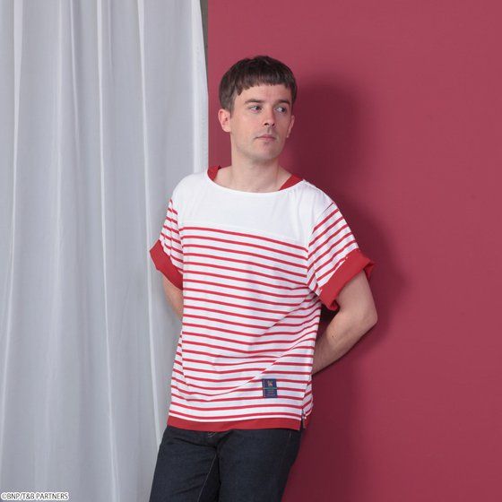 “バーナビー・ブルックス Jr.”モデルは上品なレッドを基調にしたデザインで普段使いしやすいデザインに仕上げました。 また、やや横に広く浅いネックラインの両端にも、タンクトップとの重ね着風のようなデザインを施すことによって、印象的な首元に。 サラリとした肌触りで盛夏でも過ごしやすい、やわらかな着心地のボーダーTシャツです。 上にミリタリーシャツを羽織ってクールに、ジーンズに合わせてカジュアルにするなど、様々なアウターやボトムスにも合わせやすい着回し抜群のアイテムです。 ・対象年齢 :15才以上 ・種類 :鏑木・T・虎徹、バーナビー・ブルックス Jr. ・商品サイズ :身丈…ネックポイント? メンズM :身丈67cm、身幅52cm、肩幅47cm、袖丈25cm メンズL :身丈70cm、身幅55cm、肩幅50cm、袖丈26cm レディースM :身丈58cm、身幅48cm、肩幅40cm、袖丈23cm レディースL :身丈61cm、身幅51cm、肩幅43cm、袖丈24cm ・商品素材 :ボーダー部分…綿 95% ポリウレタン 5% ヨーク部分 …ポリエステル 60% レーヨン 35% ポリウレタン 5% 布帛部分 …綿 95% ポリウレタン 5% ・生産国 :中国 |