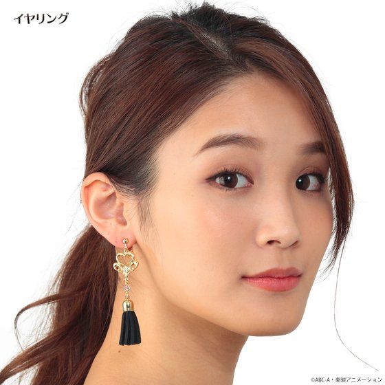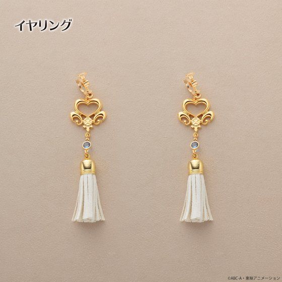 ゴールドメッキを使用したプリキュアマークの下に、それぞれのカラータッセルが付いた豪華で大ぶりなイヤーアクセサリーです。