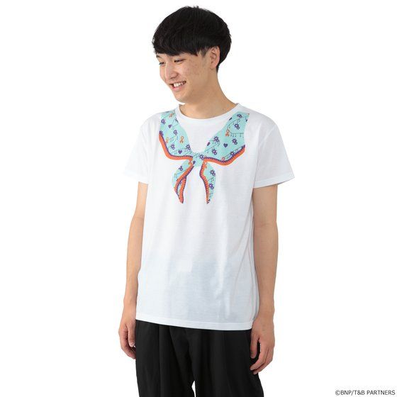 「TIGER & BUNNY」より、乙女☆クラブ(ブルーローズ/ドラゴンキッド/ファイヤーエンブレム)をモチーフにしたスカーフ柄のトロンプルイユTシャツが登場! 「キャラクターアイコン柄」と「ヒーローアイコン柄」の2種類展開です。 ブルーのスカーフの「キャラクターアイコン柄」は、カリーナ・パオリン・ネイサンをモチーフにしたデザイン。 歌手志望のカリーナをイメージした音符に、パオリンが両親から贈られた髪飾りをイメージした2連の紫の花と、ネイサンの首飾りのアイコンを組み合わせました。 また、恋バナが好きな3人の共通のアイコンとして、ハートを散りばめたデザインとなっています。 イエローのスカーフの「ヒーローアイコン柄」は、ブルーローズ・ドラゴンキッド・ファイヤーエンブレムをモチーフにしたデザイン。 ブルーローズの乗るバイクに描かれている薔薇とトゲのモチーフに加え、ドラゴンキッドの頭の飾りと、ファイヤーエンブレムの額のマークを組み合わせました。 こちらも3人共通の関心事である「恋」をイメージして小さなハートを散りばめました。 さりげないデザインなので、普段使いにもピッタリです。 ■種類展開:キャラクターアイコン柄/ヒーローアイコン柄 ■サイズ: 【メンズM :身丈 約70cm 身巾 約55cm 肩巾 約46cm 袖丈 約17cm】 【レディースM :身丈 約67cm 身巾 約50cm 肩巾 約43cm 袖丈 約16cm】 ■素材:ポリエステル75% 綿25% ■生産国:日本 ■対象年齢15才以上 ※男性モデル:身長約179cm ※女性モデル:身長約154cm ※女性モデルが着用しているブルーのスカーフの「キャラクターアイコン柄」Tシャツはメンズサイズです。 ※掲載している写真はサンプルのため、実際の商品とは多少異なる場合があります。 ※写真はイメージです。写真と実際の商品の色味は多少異なる場合がございますのでご了承ください。 |