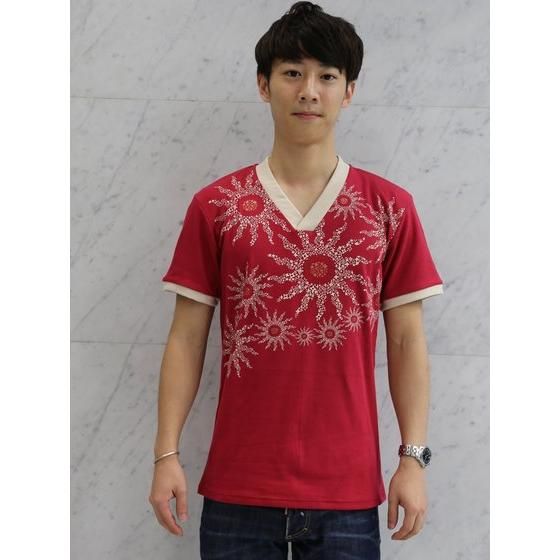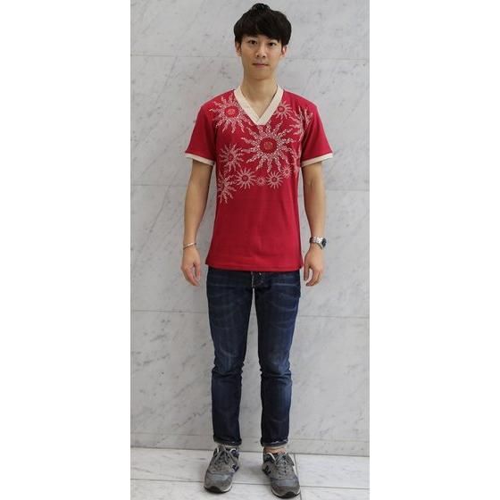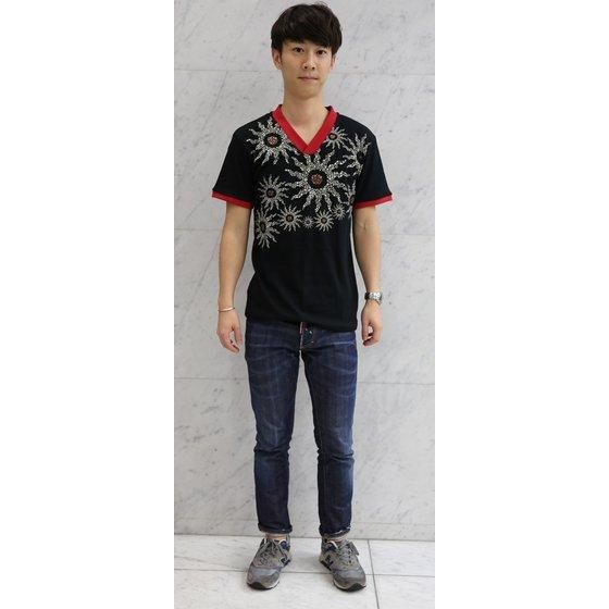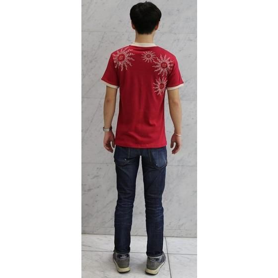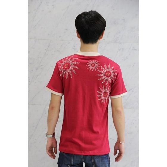 ※こちらの商品は在庫販売のため、在庫が少ない商品や欠品しているサイズがございます。 手裏剣戦隊ニンニンジャー×C&Y SUN & C&LE MOONコラボシリーズ。 アカニンジャーこと伊賀崎天晴の半袖Tシャツです。 デザインはデザイナー「ミシェル・カーラー」として活躍の俳優「唐橋充」氏。 手裏剣をモチーフにしたデザインです。 背面プリントあり。 ■手裏剣小紋柄 小さな手裏剣が散らばったデザイン。 肩部分はジンベイ風にメッシュの切り替えデザインになっています。 襟元は、着物をイメージした合わせ風のVネックに、和テイストの総柄生地を合わせました。 ※襟は総柄生地を使用しているため、柄の出方は商品により異なります。 【サイズ】 S:着丈64 身巾46 肩巾43 袖丈19cm M:着丈66 身巾48 肩巾45 袖丈20cm L:着丈68 身巾50 肩巾47 袖丈21cm ※伊賀崎天晴Mサイズ着用。 ※若干細めのシルエットです。 【素材】 綿100% メッシュ部、襟 ポリエステル100% ■手裏剣花火柄 手裏剣をモチーフにした花火風の柄です。 背面プリントあり。 襟元は、着物をイメージした合わせ風のVネックの太目のテレコを合わせました。 【サイズ】 S:着丈66 身巾46 肩巾41 袖丈18.5cm M:着丈68 身巾48 肩巾43 袖丈19.5cm L:着丈70 身巾50 肩巾45 袖丈20.5cm ※伊賀崎天晴Mサイズ着用。 ※若干細めのシルエットです。 【素材】 本体:綿100% テレコ(襟、袖):綿95%ポリウレタン5% ■手裏剣ドット柄 手裏剣をドットで表現し地紋のようにデザイン。 フリーハンドのドットがいい味を出しています。 背面プリントあり。 襟元は、着物をイメージした合わせ風のVネックのフライスを合わせました。 全体的に少し厚めの天竺素材でザックリ感があります。 【サイズ】 S:着丈69 身巾47 肩巾48 袖丈24cm M:着丈71 身巾49 肩巾50 袖丈25cm L:着丈73 身巾51 肩巾52 袖丈26cm ※伊賀崎天晴は赤のMサイズ着用。 【生産国】 日本 ※掲載の写真は試作のため、実際の商品と若干変わる場合があります。 ※掲載写真の色と実際のカラーが違って見える場合があります。 |