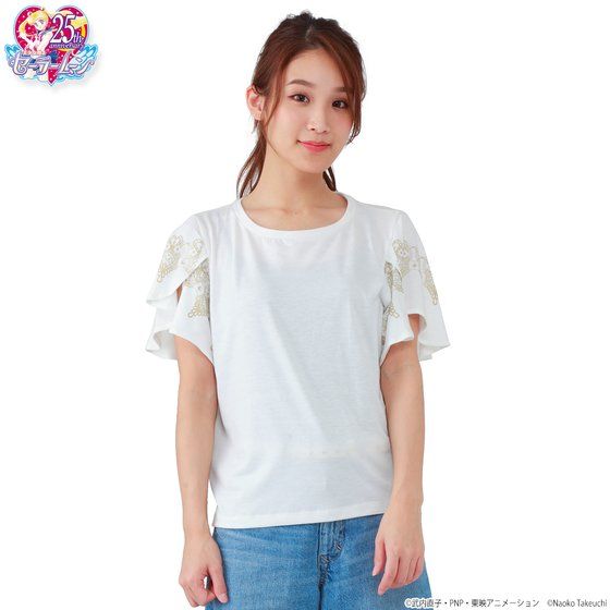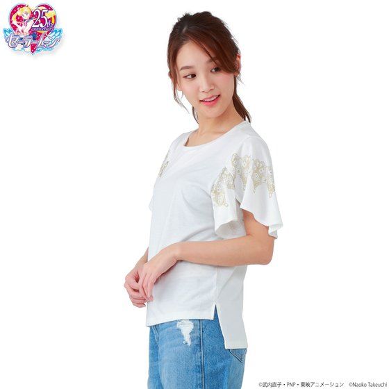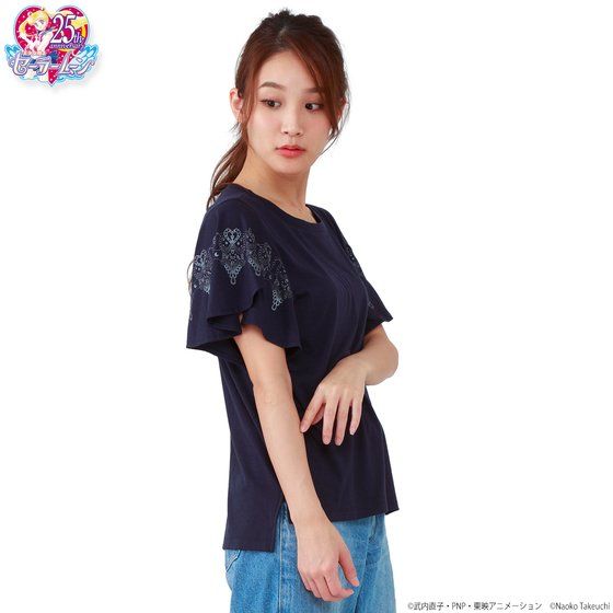 ふわっとした袖が可愛い♪普段使いにぴったりの『ラッフルスリーブカットソー』が登場! 幅広いシーズンで普段使いにぴったりなカットソーが登場いたします! ひらひらと波打ったようなデザインの「ラッフルスリーブ」は女性らしいシルエットを演出し、これ一枚でコーディネートがきまります♪肩から二の腕まわりをさりげなくカバーする効果もあります! 柔らかな素材で夏でも快適な着心地です。 色は使いやすい白とネイビーの2色をご用意しました。 白のカットソーの袖には、ゴールドのプリントで、レースモチーフのデザインの中にセーラー5戦士の守護星マークがあしらわれています。 ネイビーのカットソーの袖には、シルバーのプリントで、レースモチーフのデザインの中にセーラームーンと外部太陽系4戦士の守護星マークがあしらわれています。 いずれも背中にはワンポイントで月マークとロゴがデザインされています。 上品でさりげないデザインで使い勝手も抜群です! 素材: ポリエステル 60% レーヨン 35% ポリウレタン 5% ※割合は多少変更となる可能性があります サイズ:身丈 (ネックポイント?前/後ろ)58cm/65cm、 肩巾35cm、身巾47cm、袖丈21cm (ワンサイズ) 生産国:中国 対象年齢:15歳以上 ※お届け時期を変更し、ご注文を承る場合がございます。 ※準備数に達した場合、早期に販売を終了させていただくことがございます。 ※商品仕様等は予告なく変更になる場合があります。 ※掲載している写真は開発中のため、実際の商品とは多少異なる場合があります。 |