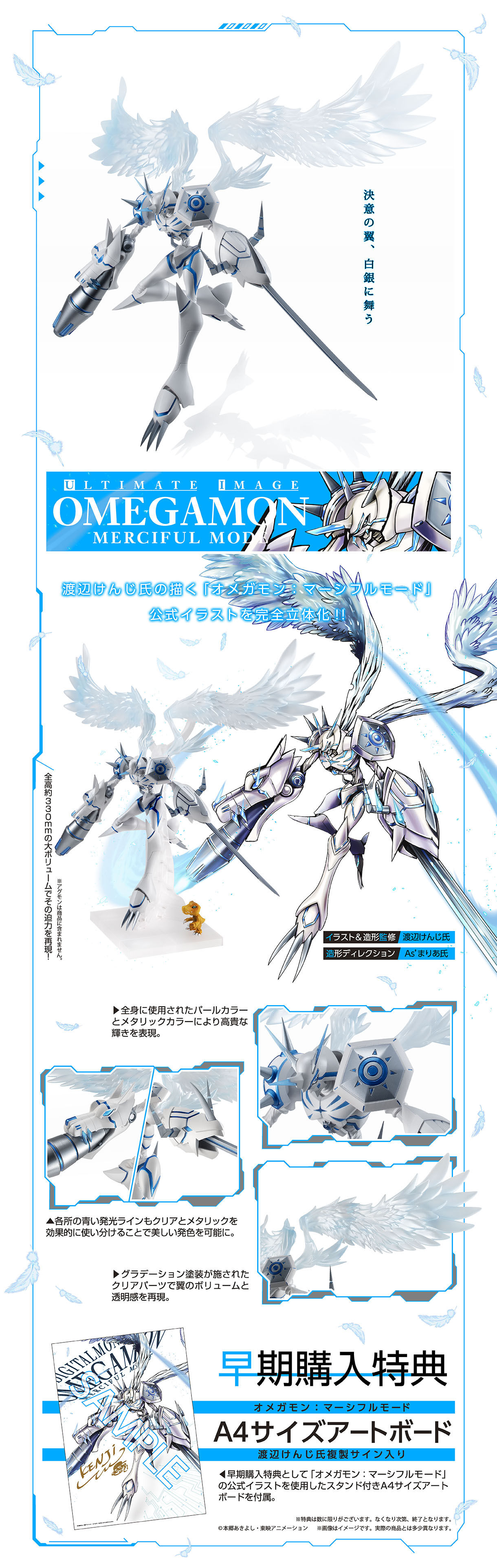 「オメガモン:マーシフルモード」が遂に立体化。 渡辺けんじ氏完全監修のもと、公式イラストに忠実に造形。 クリアパーツやパール塗装を贅沢に使用した、唯一無二の「オメガモン:マーシフルモード」です。 |