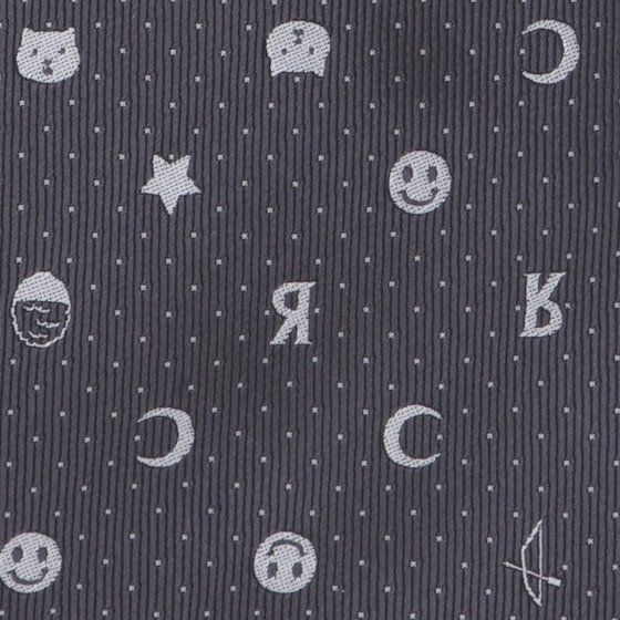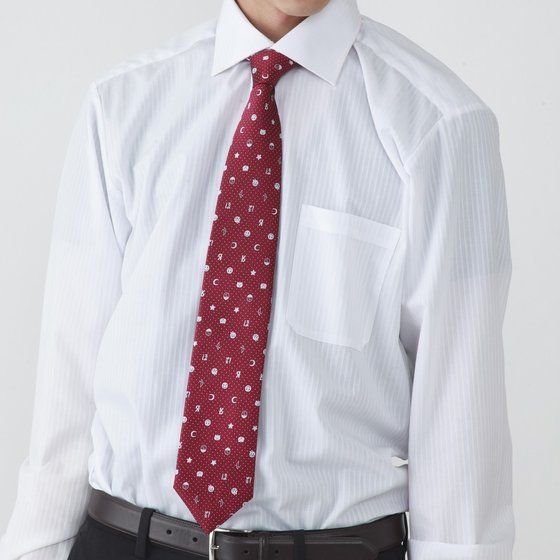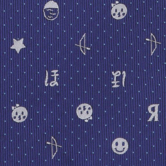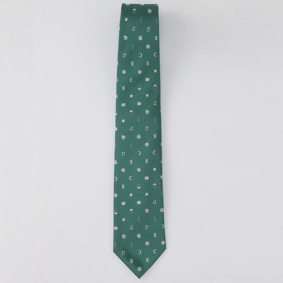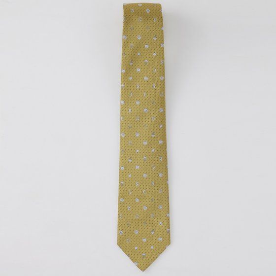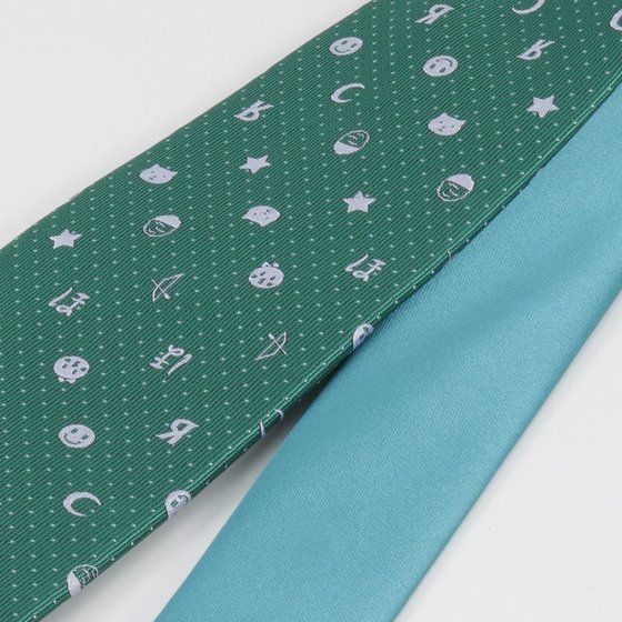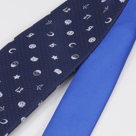 イメージカラーをベースにアイコンを散りばめ、 ネクタイの真ん中から小剣(ネクタイの細い方)に向かって単色に切り替わっています。