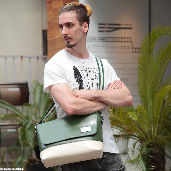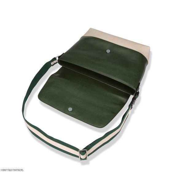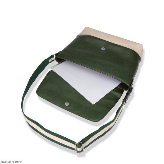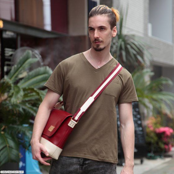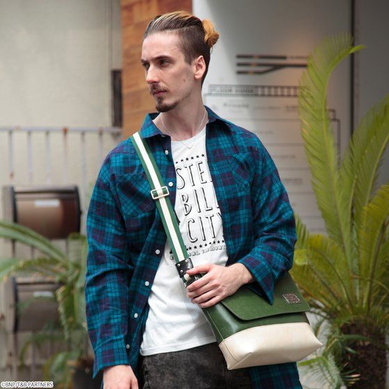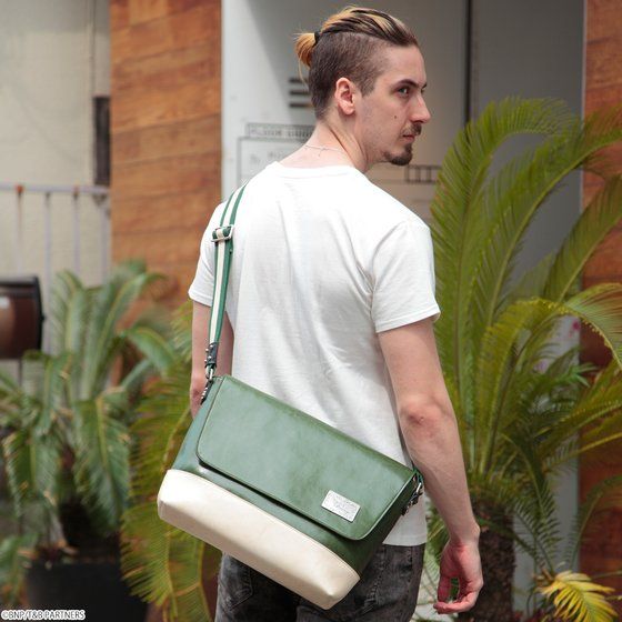 使うほどに味わいが増すスプリットレザー(牛床革)を使用したメッセンジャーバッグです。 “鏑木・T・虎徹”モデル、“バーナビー・ブルックス Jr.”モデルともに、外側はイメージカラーをベースにナチュラルなアイボリーを配色。 両モデルとも黒ベースの裏地で、ファスナー付きのポケット1つと仕切りポケット2口を配置しています。 A4サイズのファイルがすっぽり入るサイズ感で、ビジネスでもプライベートでも使いやすい仕様となっています。 また、開閉が便利なマグネット式なので、荷物の出し入れを楽にできます。 ショルダーベルト部分にはヒーローが手首に付けているPDA(ブレスレット型通信機)の形状をデザイン。 また、ベルトループと根革部分には、“鏑木・T・虎徹”モデルは腕時計のデザインをイメージした半球のシルバーのスタッズ、“バーナビー・ブルックス Jr.”モデルはベルトをモチーフに、ゴールドの鳩目を配置したこだわりのデザインとなっています。 ・対象年齢 :15才以上 ・種類 :鏑木・T・虎徹、バーナビー・ブルックス Jr. ・商品サイズ :本体 W下部33cm/上部40cm ×H26cm×D9cm ・ ショルダーベルトW3.8cm×最長132cm/最短74cm ・商品素材 :表地:牛床革(ポリウレタンコーティング) 裏地:ポリエステル100% ・生産国 :中国 ※男性モデル:身長約186cm ※女性モデル:身長約170cm |