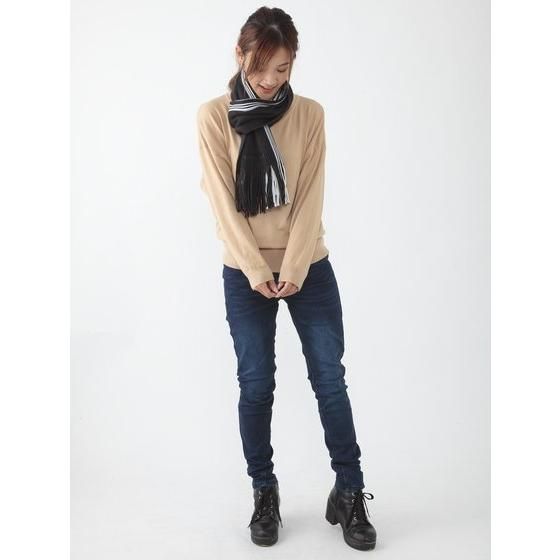 渋めの三色カラーの切り替えがシックな三色マフラーと