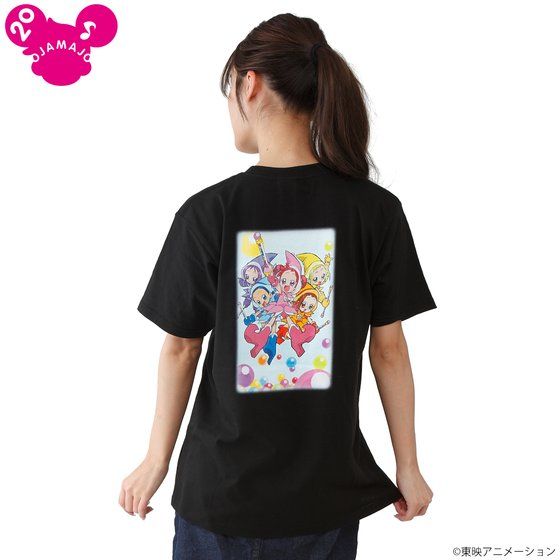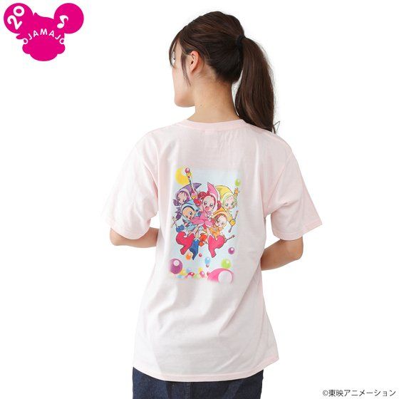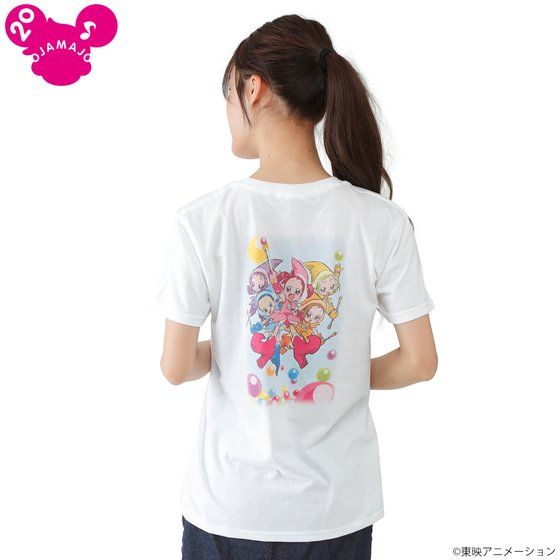 『おジャ魔女どれみ』の20周年を記念したTシャツが登場! 「おジャ魔女どれみ バックプリントTシャツ」は背中にどれみ、はづき、あいこ、おんぷ、ももこが揃った20周年記念イラストをプリントしたメモリアルなTシャツです。 胸元にはワンポイントでピンクの20周年記念ロゴをデザインしています。 ボディはホワイト、ブラック、ピンクの3種展開です。 ■生産エリア:中国 ■素材:綿100% ■種類:ホワイト、ブラック、ピンク ■サイズ展開:レディースM,レディースL,メンズM ■サイズ詳細:(cm)