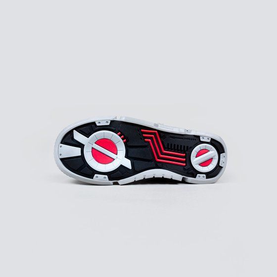 HENSHIN by KAMEN RIDER SNEAKER Type FAIZ ブラックとシルバーの本革に赤いリフレクターライン。 フラッシュで浮かび上がる光は暗闇の仮面ライダー555を思わせる。 ミッドカットに存在感のあるソールを組み合わせる事で生まれた圧倒的なガジェット感。 足裏を見れば仮面ライダー555の足跡を象ったアウトソールの迫力ある再現がされている。 タンはニット素材による凹凸仕様で、 スニーカー全体に表情を与えるだけでなく、仮面ライダー555の首のラインも表現している。 着用時には見えないライニングの黄色いメッシュ部分は、 特徴的な仮面ライダー555の目の形を表現している。 自分自身がオルフェノクであるかも知れないという不安、 またその犠牲の上に立ち、戦う姿勢を、 インナーソールの灰のデザインにて表現した。 使用用途:カジュアルシューズ 甲材:天然皮革 底材:ゴム底 サイズ:24.5cm 25.5cm 26.5cm 27.5cm 【生産エリア】 中国 ※対象年齢15歳以上 ※掲載の商品の色と実際の商品が違って見える場合があります。 ※お届け時期を変更し、ご注文を承る場合がございます。 ※準備数に達した場合、早期に販売を終了させていただくことがございます。 ※商品仕様等は予告なく変更になる場合があります。 ※掲載している写真は開発中のため、実際の商品とは多少異なる場合があります。 |