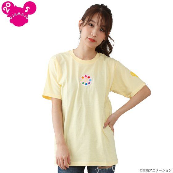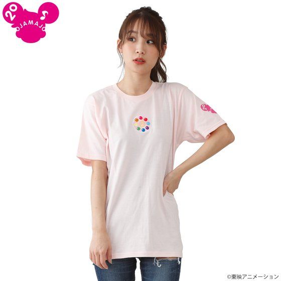 『おジャ魔女どれみ』の20周年を記念したTシャツが再登場! 「おジャ魔女どれみ 見習いタップTシャツ」は胸元の見習いタップの刺繍ワッペンがポイントになっています。 どれみ、はづき、あいこ、おんぷ、ももこそれぞれをイメージしたカラーリングのボディでおつくりしております。 さらに、左袖にはそれぞれのカラーで20周年ロゴがデザインされています。 推しのカラーをお選びいただいたり、その日の気分で楽しんでいただけるアイテムです。 ■生産エリア:中国 ■素材:綿100% ■種類:どれみ、はづき、あいこ、おんぷ、ももこ ■サイズ展開:レディースM,レディースL,メンズM ■サイズ詳細:(cm)