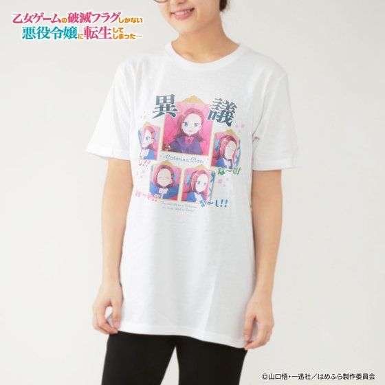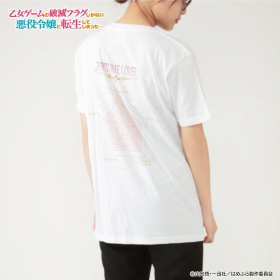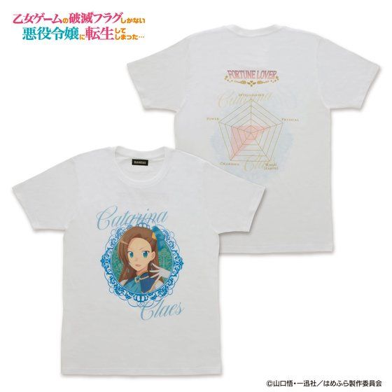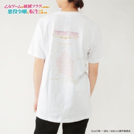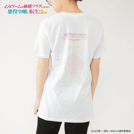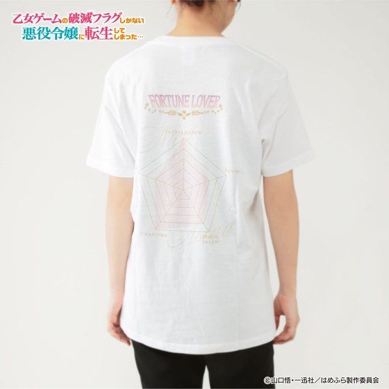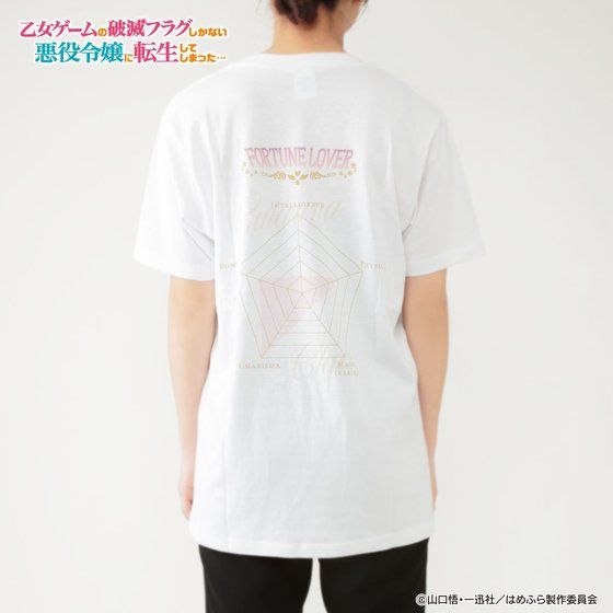 『乙女ゲームの破滅フラグしかない悪役令嬢に転生してしまった…』Tシャツが登場! キャラクターのプリントをメインに、バックプリントには「FORTUNE LOVER」ロゴと各キャラクターのバラメータでデザインされた5種と、「カタリナ脳内会議」の様子をプリントしたデザインの1種類の計6種類がラインナップ。 〔素材〕 綿100% 〔サイズ〕 【S:着丈65 身幅47 袖丈19cm】 【M:着丈68 身幅50 袖丈20cm】 【L:着丈71 身幅53 袖丈21cm】 【XL:着丈74 身幅56 袖丈22cm】 〔生産エリア〕 中国 ※対象年齢15歳以上 ※お届け時期を変更し、ご注文を承る場合がございます。 ※準備数に達した場合、早期に販売を終了させていただくことがございます。 ※商品仕様等は予告なく変更になる場合があります。 ※掲載している写真は開発中のため、実際の商品とは多少異なる場合があります。 ©山口悟・一迅社/はめふら製作委員会 |
