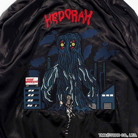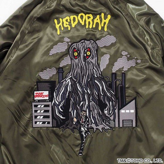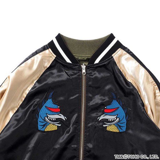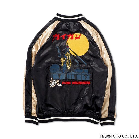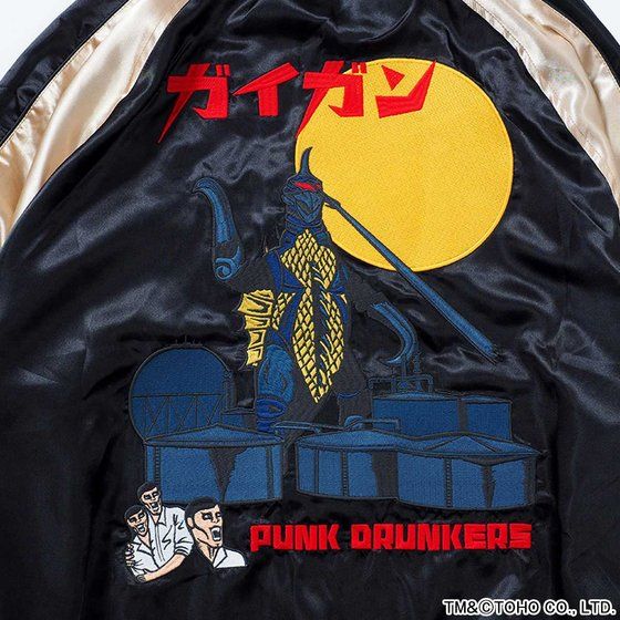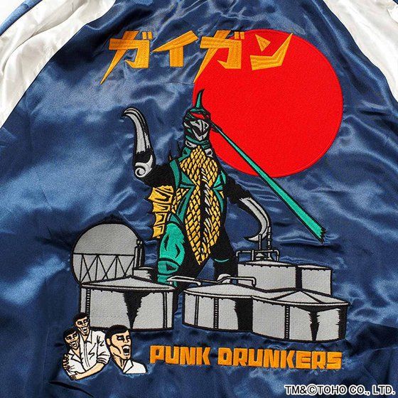 人気ファッションブランドPUNK DRUNKERSと、 日本を代表する特撮怪獣映画【ゴジラ】とのコラボアイテム。 ゴジラの敵である「ガイガン」と「ヘドラ」のリバーシブルスカジャン!! ガイガン側 前身には、ガイガンの顔が向き合っている。 後身は、ガイガンが街を破壊しており、額から光線砲がビビビーーーッ!! あいつたちが恐怖に慄いている。 そして、折り返すと・・・・ ヘドラ側 前身には、飛行状態のヘドラ。 目が不気味に光っているように見える。 後身は、ヘドラが工場地帯から登場し、アイツが逃げている。 最高にかっこいい出来!! マニアックなゴジラ好きにはたまらない一品です。 今回のスカジャンは「中綿無し」なので、 春先に羽織るのにぴったりです! (商品サイズ) 着丈 S 65cm M 68cm L 71cm XL 74cm 身幅 S 57cm M 60cm L 63cm XL 66cm 裄丈 S 87cm M 89cm L 91cm XL 93cm