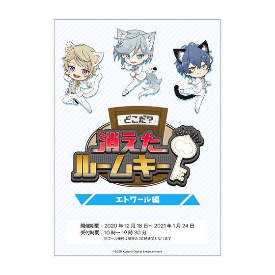 「ダンキラ!!! - Boys, be DANCING! - in ナンジャタウン 〜ねこねこ・ダンキラ・パーティー〜」で開催されたラリーゲーム「どこだ?消えたルームキー」がご自宅でも楽しめるラリーキットです。