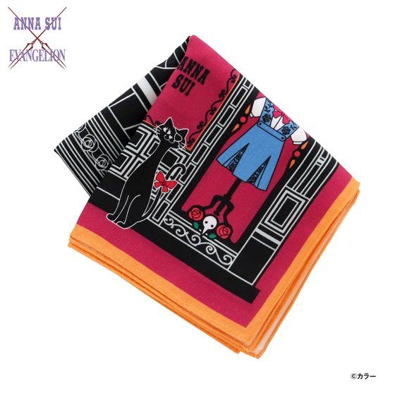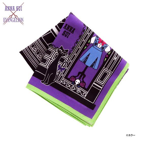 「エヴァンゲリオン」×「ANNA SUI」初コラボレーション! アナ スイショップをイメージしたデザインのプリントハンカチです。 店内の洋服や家具など、ショップ全体にアナ スイとエヴァの世界観が広がるスペシャル仕様のハンカチーフです。 ファン必見の一枚です。 ・種類 :パープル、レッド、ブルー