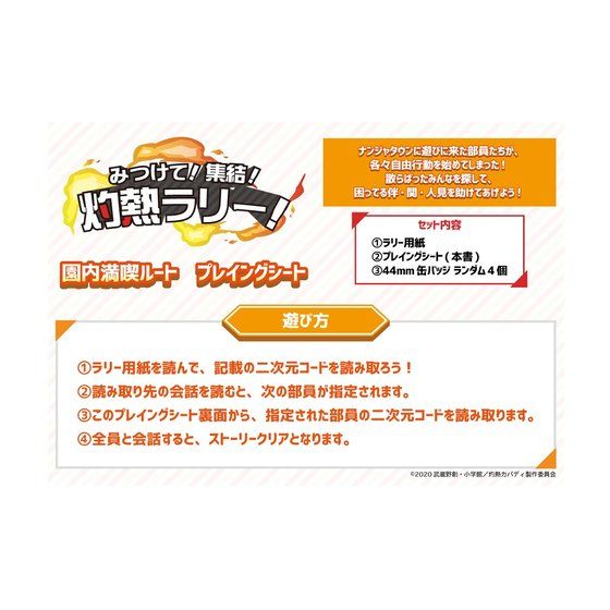 「灼熱カバディ in ナンジャタウン」コラボ限定のオリジナルグッズ「みつけて!集結!灼熱ラリー!キット」です。