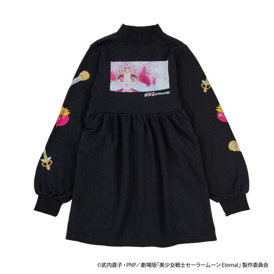 スーパーセーラーちびムーンのムービーシーンがプリントされた、ハイネックのスウェットワンピースです。