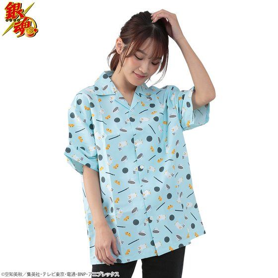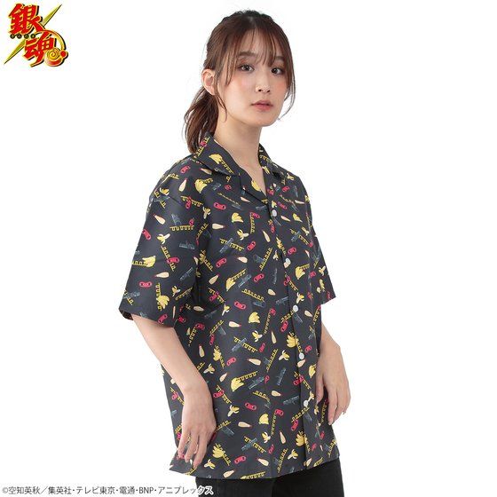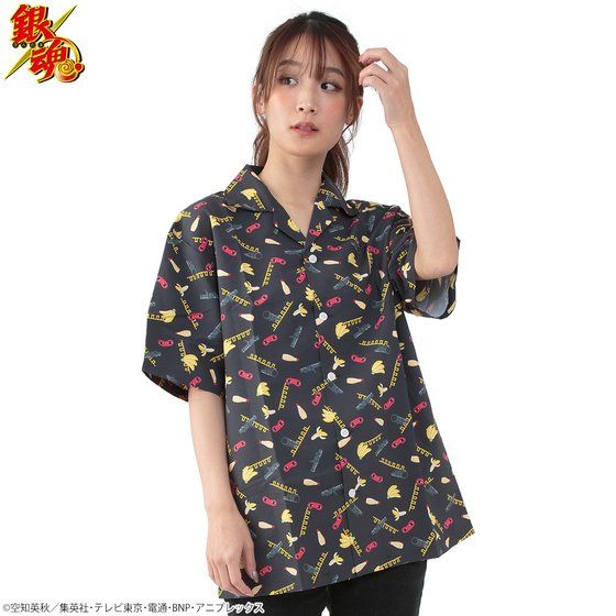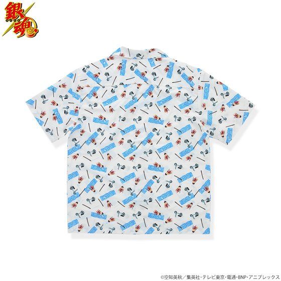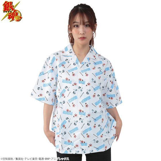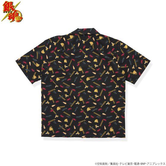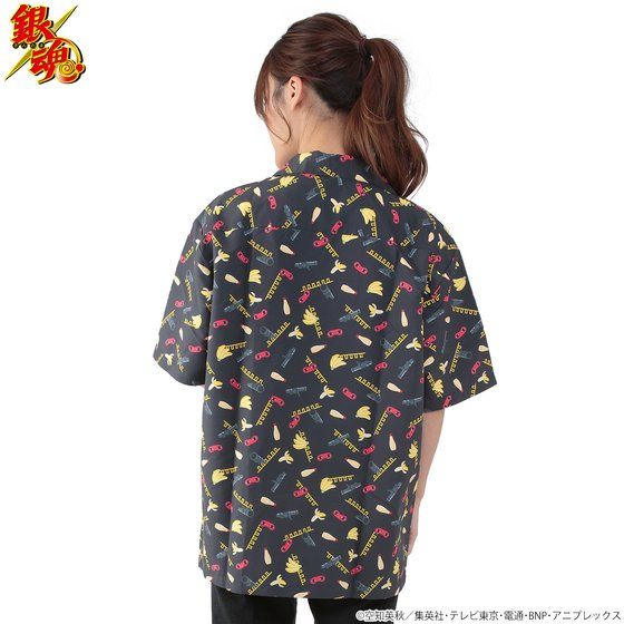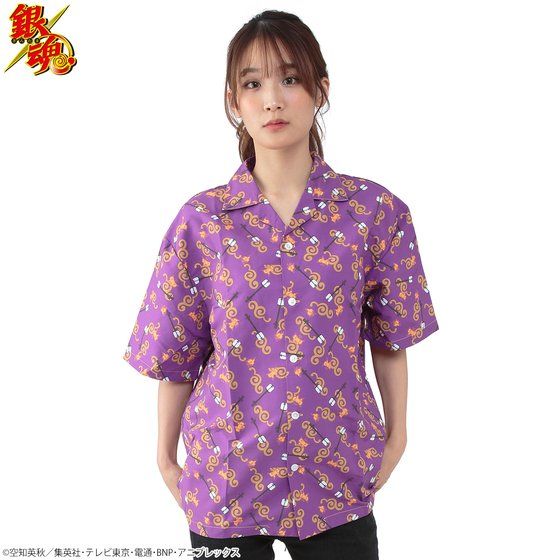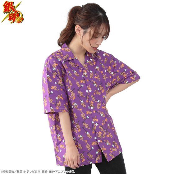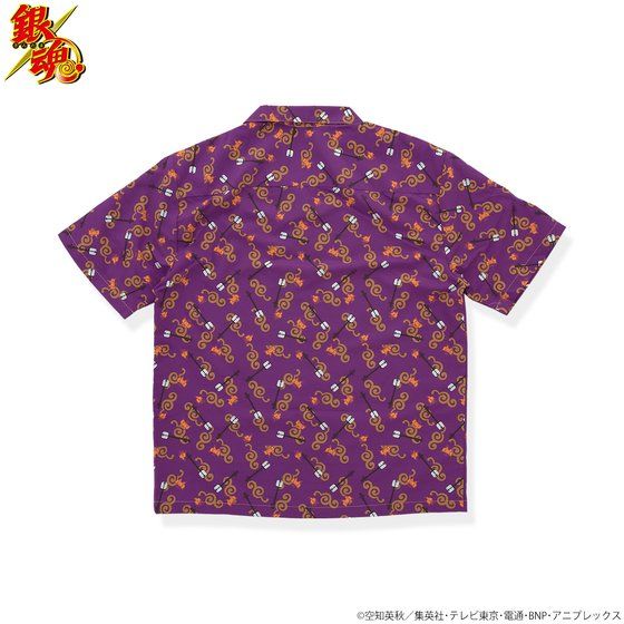 人気アニメ『銀魂.』より、賑やかな総柄アイテムシリーズが新登場!! エリザベスの形に収納することができるエコバッグや、人気キャラクターたちのお馴染みのモチーフがデザインされた総柄シャツに注目♪ 銀時、神楽、桂、高杉、真選組、それぞれの着物柄や好物等のモチーフが盛りだくさんのカラフルな開襟総柄シャツです。 【坂田銀時】 銀時のスクーターと木刀モチーフに、着物の波模様と、彼の好物であるパフェを加えた総柄となっております。 【神楽】 神楽の傘と髪飾りのモチーフに加え、ペットの定春が描かれた賑やかな総柄となっております。 カラーは赤で、神楽が身に着けるチャイナ服を連想させる仕様に仕上げました。 【桂小太郎】 桂の刀と爆弾などのモチーフに、彼の好物である蕎麦と、相棒のエリザベスが描かれた総柄です。 エリザベスが持つ看板には、「イケてるシャツ」と「とてつもなくおしゃれ」の文字がプリントされています。 【高杉晋助】 高杉の着物柄からピックアップしたモチーフに、三味線を加えた総柄となっております。 【真選組】
