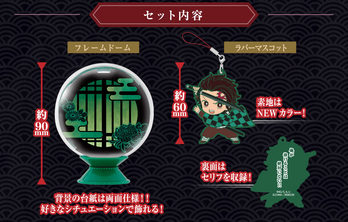 滅!カプセルラバーマスコットが飾れるフレームドームとセットになって登場! ラバーマスコットの素地は新色、裏面はセリフを収録! フレームドームの背景台紙は両面仕様で好きなシチュエーションで飾れる豪華仕様!。 ※禰豆子の「禰」は「ネ+爾」が正しい表記となります。 【セット内容】 ラバーマスコット…1個 フレームドーム…1個 【製品素材】 ラバーマスコット:PVC フレームドーム:ABS・PC・厚紙 【サイズ】 ラバーマスコット:約60mm フレームドーム:約90mm 【対象年齢】 15歳以上 ※商品の仕様に関して※ ・掲載写真は試作品です。実際の商品とは異なる場合がございますのでご了承ください。 ・カプセルは付属しません。 ※ご注文条件に関して※ ・商品仕様や発送日は予告なく変更になる場合がございます。予めご了承ください。 ・準備数に達し次第、ご注文の受付を終了致します。多数のご要望をいただいた場合、準備数を調整して再度販売することがございます。予めご了承ください ・サービスの性質上、同じ商品が続けて出てくることがありますのでご了承ください。 ・お届けに先行して、全国のカプセル自販機でも販売される可能性がございます。 |