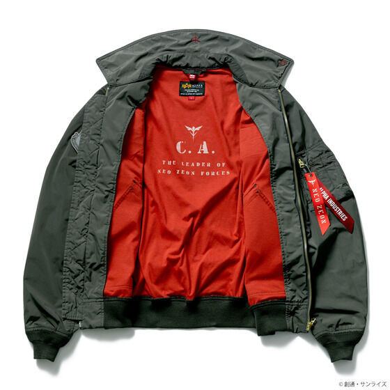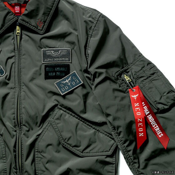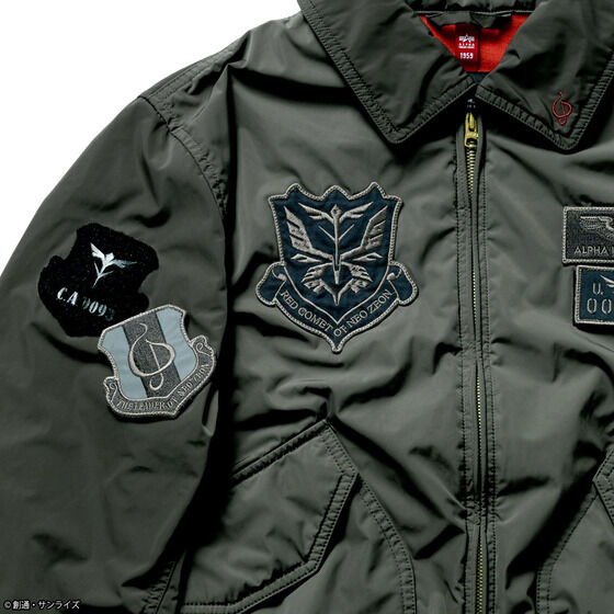 『機動戦士ガンダム 逆襲のシャア』NEO ZEON シャア・アズナブルモデルは、ネオ・ジオンマークをベースにしたワッペンを、左胸(面ファスナーにて取り外いが可能)と右胸にデザイン、右袖の取り外しが可能なシャア専用(サザビー)ワッペンは、夜間の歩行や自転車走行の際に、車からの視認性をアップさせるリフレクター仕様となっています。