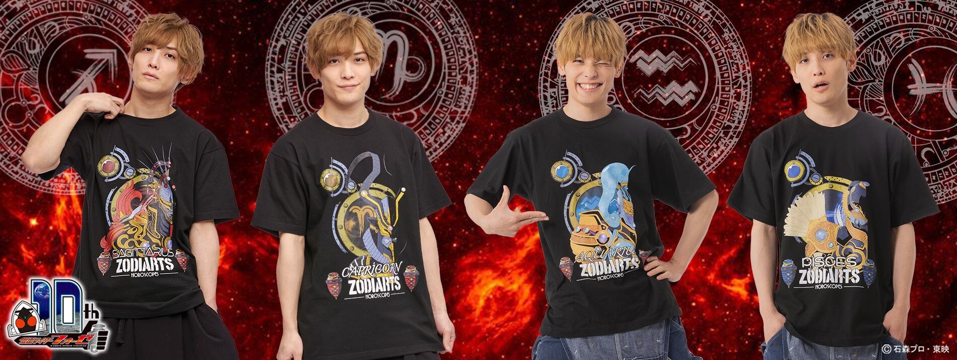 仮面ライダーフォーゼに登場するゾディアーツ怪人デザインを担当されている麻宮騎亜氏が自らTシャツをデザイン。