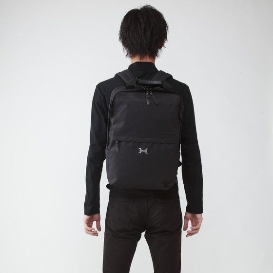 仮面ライダーシリーズの企業のマークがデザインされたビジネスリュック。