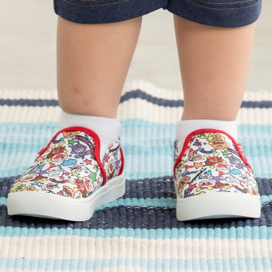 アンパンマンと仲間たちがデザインされた元気な総柄スリッポン! アンパンマンやばいきんまん、カレーパンマン、しょくぱんまん、ドキンちゃん、めいけんチーズ、あかちゃんまんと仲間たちが勢ぞろい! 底のゴムがとってもやわらかく、お子様の小さな足にもフィット。 インソールは、アンパンマンとばいきんまんが向かい合っているイラストになっており、左右が間違えにくい知育要素のあるスリッポンです♪ 【ANPANMAN KIDS COLLECTION/ アンパンマンキッズコレクション】は 「着ているだけで笑顔になる」をコンセプトに、 ”アンパンマンといつでも一緒にいたい”という こども達の夢をかなえるコレクションです。 保育園や幼稚園で活躍するデイリー服から、 おでかけ着・ギフトにぴったりの雑貨まで、 幅広く取り扱っています。 <カラー> オフ白、ピンク <素材> 本体:ポリエステル100% パイピング部分:ポリエステル100% 底材:合成ゴム(TPR) <サイズ>(約) 14cm、15cm、16cm、17cm <生産エリア> 中国 |