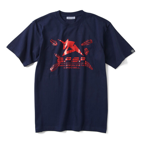 アムロ・レイのパーソナルマークと6枚のフィン・ファンネルを組み合わせたデザインを箔プリントにて落とし込んだTシャツ。