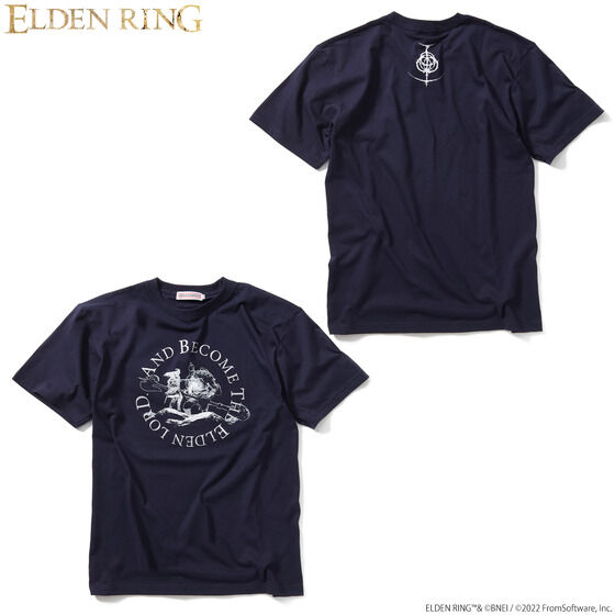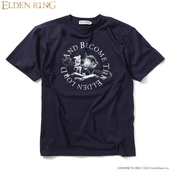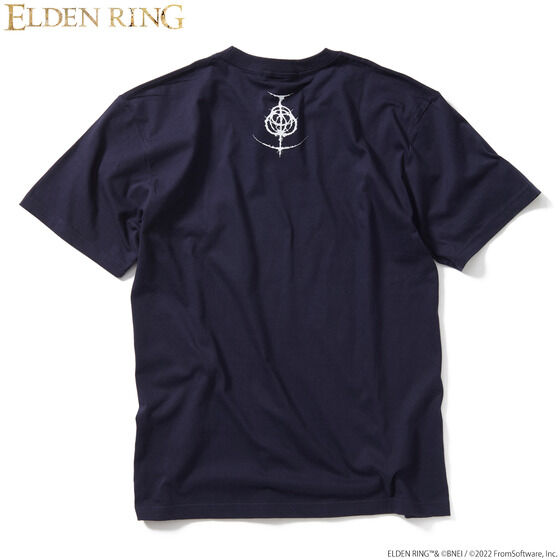 世界的人気を博す『DARK SOULS(ダークソウル)』シリーズを手掛けた株式会社フロム・ソフトウェアと株式会社バンダイナムコエンターテインメントの共同開発により、2022年2月25日にリリースされた渾身のアクションRPG『ELDEN RING(エルデンリング)』から、高路下の洞窟のボス、ガーディアン・ゴーレムとの闘いのショットをサークルロゴ内に落とし込んだグラフィックと、バックにシンボルをあしらったTシャツです。