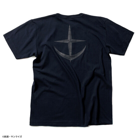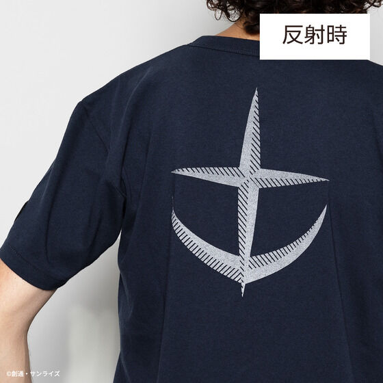 フロント左胸にE.F.S.F.と0079のロゴをワンポイントでプリント、バックに連邦軍のマークが光った際に斜線が浮き出るようなデザインで大胆にプリントしております。