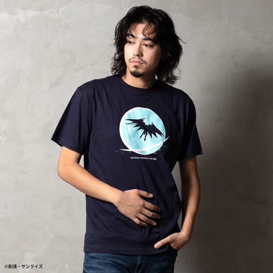ネイビーのBODYに作中のガンダムデスサイズの象徴的なシーンをシルエットで表現したデザインの半袖Tシャツです。
