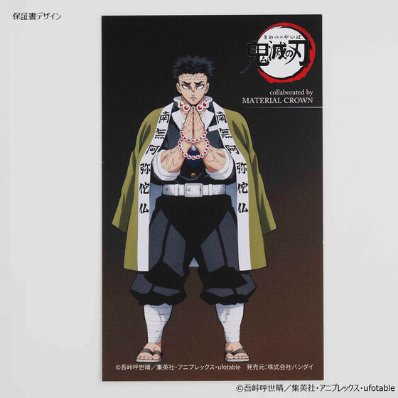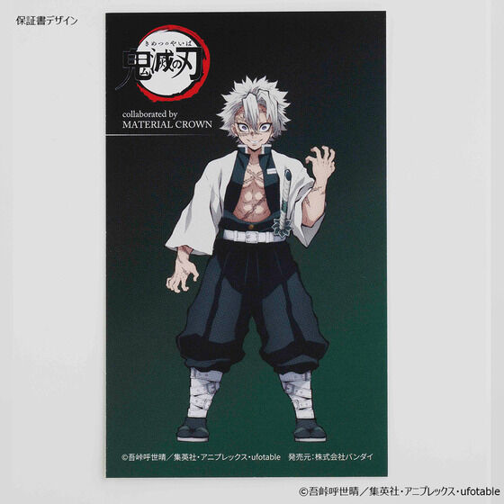 アニメ「鬼滅の刃」 MATERIAL CROWN イメージリング第5弾! テレビアニメ「鬼滅の刃」に登場する時透無一郎、不死川実弥、悲鳴嶼行冥をイメージしたリング全3種を展開いたします。 商品1点お買い上げごとに、専用アクセサリーケース(紙製/箱)と、 それぞれのキャラクターのイラストが入った専用保証書が1セット付属いたします。 【アニメ「鬼滅の刃」MATERIAL CROWN イメージリング 伍 時透無一郎】 時透無一郎をイメージしたシルバーリング。 日輪刀の鍔の造形と、淡いライトブルーとクリアの輝石を組み合わせてデザインしました。 シンプルなデザインながらも、細部まで「鬼滅の刃」の世界観を凝縮した珠玉の造形のアイテムです。 【アニメ「鬼滅の刃」MATERIAL CROWN イメージリング 伍 不死川実弥】 不死川実弥をイメージしたシルバーリング。 日輪刀の鍔の形状に、キャラクターをイメージした輝石と、 胸や体中の傷跡をイメージした造形を組み合わせたデザインへと落とし込みました。 細部まで「鬼滅の刃」の世界観を凝縮した珠玉の造形のアイテムです。 【アニメ「鬼滅の刃」MATERIAL CROWN イメージリング 伍 悲鳴嶼行冥】 悲鳴嶼行冥をイメージしたシルバーリング。 首元や手に持った数珠をモチーフに、小ぶりながらも重量感のあるデザインへと仕上げました。 リング中央ではキャラクターをイメージした落ち着いたブラウンのカラーの天然石、 スモーキークォーツが輝き、印象的に演出します。 【サイズ】 ■時透無一郎 イメージリング ・3号/5号/7号/9号/11号/13号/15号/17号 ・最大幅:約5.2mm 最小幅:約2mm ■不死川実弥 イメージリング ・3号/5号/7号/9号/11号/13号/15号/17号 ・最大幅:約9mm 最小幅:約2mm ■悲鳴嶼行冥 イメージリング ・3号/5号/7号/9号/11号/13号/15号/17号 ・最大幅:約7mm 最小幅:約2mm 【素材】 ■時透無一郎 イメージリング ・シルバー925(ロジウムコーティング)、キュービックジルコニア(ライトブルー、クリア) ■不死川実弥 イメージリング ・シルバー925(ロジウムコーティング)、キュービックジルコニア(グリーン、クリア) ■悲鳴嶼行冥 イメージリング ・シルバー925(ゴールドコーティング)、スモーキークォーツ ※スモーキークォーツは天然石のため、一点ずつ色味や見え方が異なりますので、ご了承ください。 【共通項目】 ・生産エリア:日本 ・対象年齢:15才以上 ※商品1点お買い上げごとに、専用保証書、専用アクセサリーケース(紙製/箱)が付きます。 ※ジュエリーは大変繊細に作られておりますので、落下や衝撃には十分ご注意くださいませ。 ※商品は撮影状況や、お客様のパソコン・モニター環境などにより実物の色味と若干違って見える場合もございます。予めご了承くださいませ。 ※画像は試作品のため、実際の商品とは多少異なる場合があります。 ※お届け時期を変更し、ご注文を承る場合がございます。 ※準備数に達した場合、早期に販売を終了させていただくことがございます。 ※商品仕様等は予告なく変更になる場合があります。 ※こちらは「アニメ「鬼滅の刃」MATERIALCROWNイメージリング 伍 」の販売ページです。販売商品以外は付属しません。 |