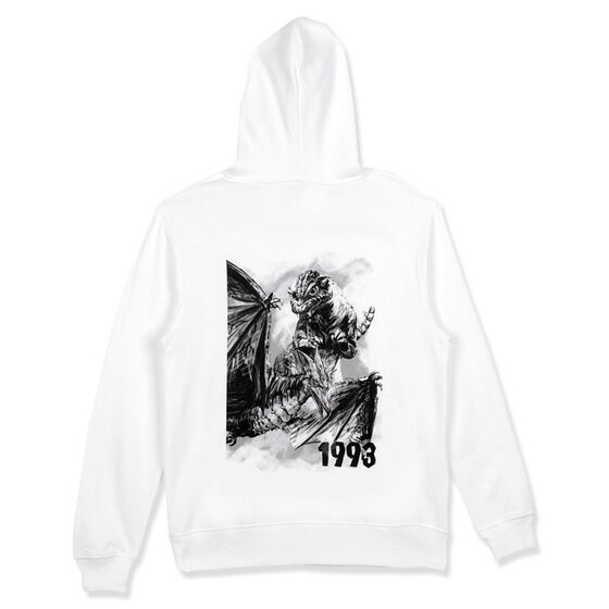 • ゴジラ モノクロデザインパーカー ラドン&ベビーゴジラ / 白BODY / M
