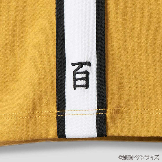 STRICT-Gとgraniphとのコラボアイテム『機動戦士Zガンダム』のハーフジップ半袖Tシャツです。 黄金色に百の文字が特徴的なエゥーゴが開発した試作モビルスーツ百式をイメージしたデザイン。 胸元の百式、バックの型番、両袖の百の文字は全て刺繍で表現しました。