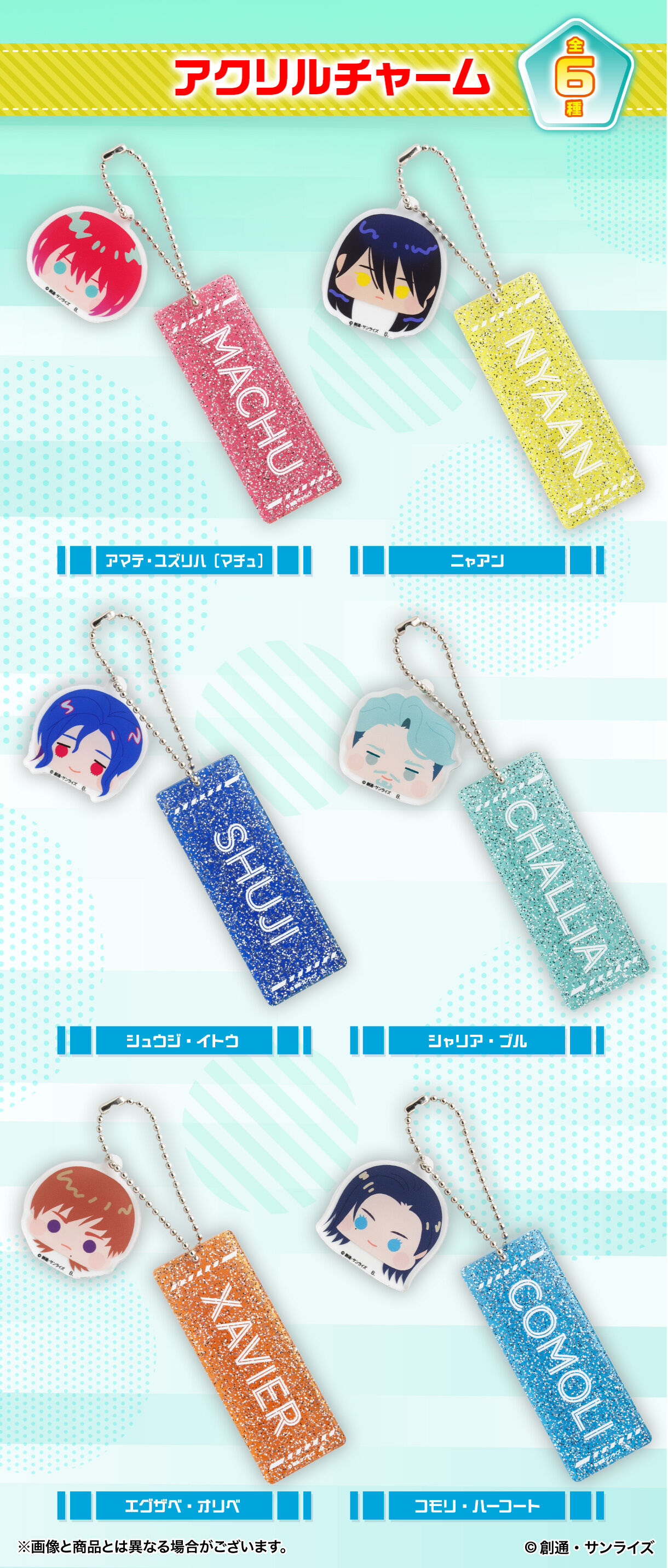 『機動戦士Gundam GQuuuuuuX(ジークアクス)』のちぃきゃらラメアクリルチャームが登場! 人気SDイラストシリーズ『ちぃきゃら』のお顔と、ラメのネームプレートが一つのチャームになったアイテムです。 キャラクターのみ、ラメのプレートのみでも楽しめる仕様です。 全6種展開です。