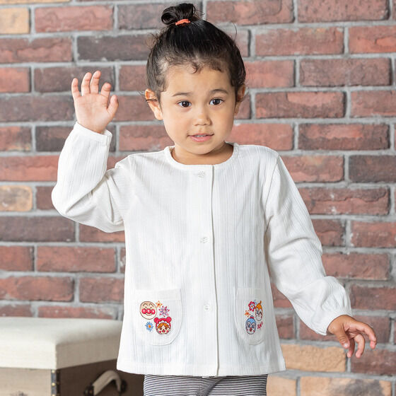 サッと羽織れるこれからの季節に大活躍の薄手のカーディガン! ポケットにはアンパンマン・あかちゃんまん・ドキンちゃん・コキンちゃんが刺繍されています。 ボタンはお花の刻印入りで、ボタン裏にはドット柄のテープを施しており、細かいところにもこだわった1枚です。 アンパンマンキッズコレクション】は 「着ているだけで笑顔になる」をコンセプトに、 ”アンパンマンといつでも一緒にいたい”という こども達の夢をかなえるコレクションです。 保育園や幼稚園で活躍するデイリー服から、 おでかけ着・ギフトにぴったりの雑貨まで、 幅広く取り扱っています。 オフ白、ネイビー 本体:ボリエステル74%、レーヨン19%、ポリウレタン7% <サイズ>(約) 90cm :着丈36cm 身巾30cm 100cm:着丈39cm 身巾32cm 110cm:着丈42.5cm 身巾34cm 120cm:着丈45.5cm 身巾36cm ベトナム <品番> 2813317 |