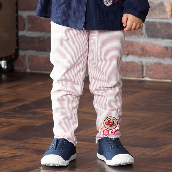 裾のアンパンマンの刺繍が可愛いレギンスパンツ! 先染めボーダー生地に左裾にはアンパンマンのお顔とお花の刺繍が施されています。 ポケット部分は異素材の配色になっております。 シンプルで合わせやすいデザインです。 アンパンマンキッズコレクション】は 「着ているだけで笑顔になる」をコンセプトに、 ”アンパンマンといつでも一緒にいたい”という こども達の夢をかなえるコレクションです。 保育園や幼稚園で活躍するデイリー服から、 おでかけ着・ギフトにぴったりの雑貨まで、 幅広く取り扱っています。 ブラック、ピンク 本体:綿94%、ポリウレタン6% ポケット部分:ポリエステル74%、レーヨン19%、ポリウレタン7% <サイズ>(約) 80cm :股上16cm 股下25cm ウエスト40cm 90cm :股上17cm 股下29cm ウエスト42cm 100cm:股上18cm 股下35cm ウエスト44cm 110cm:股上19cm 股下41cm ウエスト46cm 120cm:股上20cm 股下47cm ウエスト48cm ※股上…ベルト含む ※ウエスト…ウエストゴム上がり×2 ベトナム <品番> 2813321 |