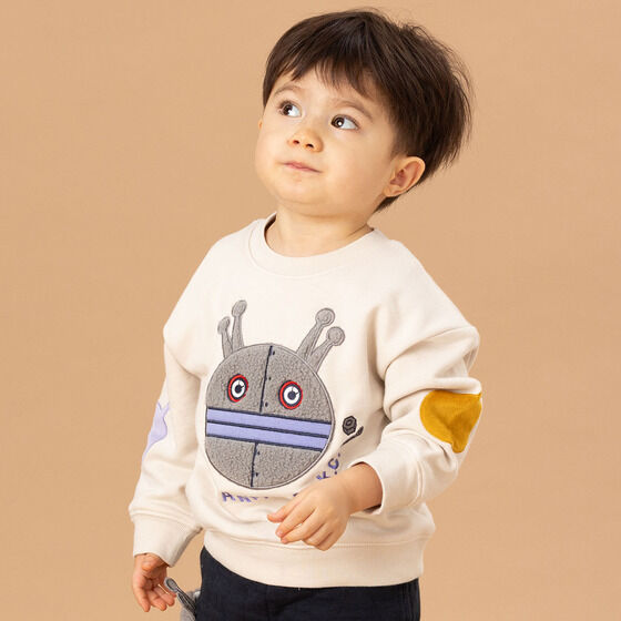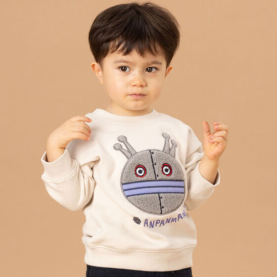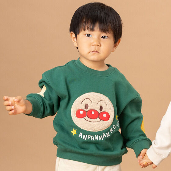 ボアのお顔アップリケとシルエットのパッチが豪華で可愛いトレーナー! グリーンはアンパンマン、ベージュはだだんだんのお顔がもこもこのボア素材でアップリケされています。袖にはパッチがついており、グリーンはめいけんチーズとカレーパンマン、ベージュはばいきんまんとドキンちゃんのシルエットデザインです。 <カラー> ベージュ、グリーン <素材> 本体:綿100% リブ部分:綿95%、ポリウレタン5% アップリケ部分:綿100% アップリケ部分別布:ポリエステル65%、綿35% <サイズ>(約) 80cm :着丈36cm 身巾30cm 90cm :着丈38cm 身巾32cm 100cm:着丈41cm 身巾34cm 110cm:着丈44cm 身巾36cm 120cm:着丈47cm 身巾38cm <生産エリア> 中国 <品番> 2813345 |