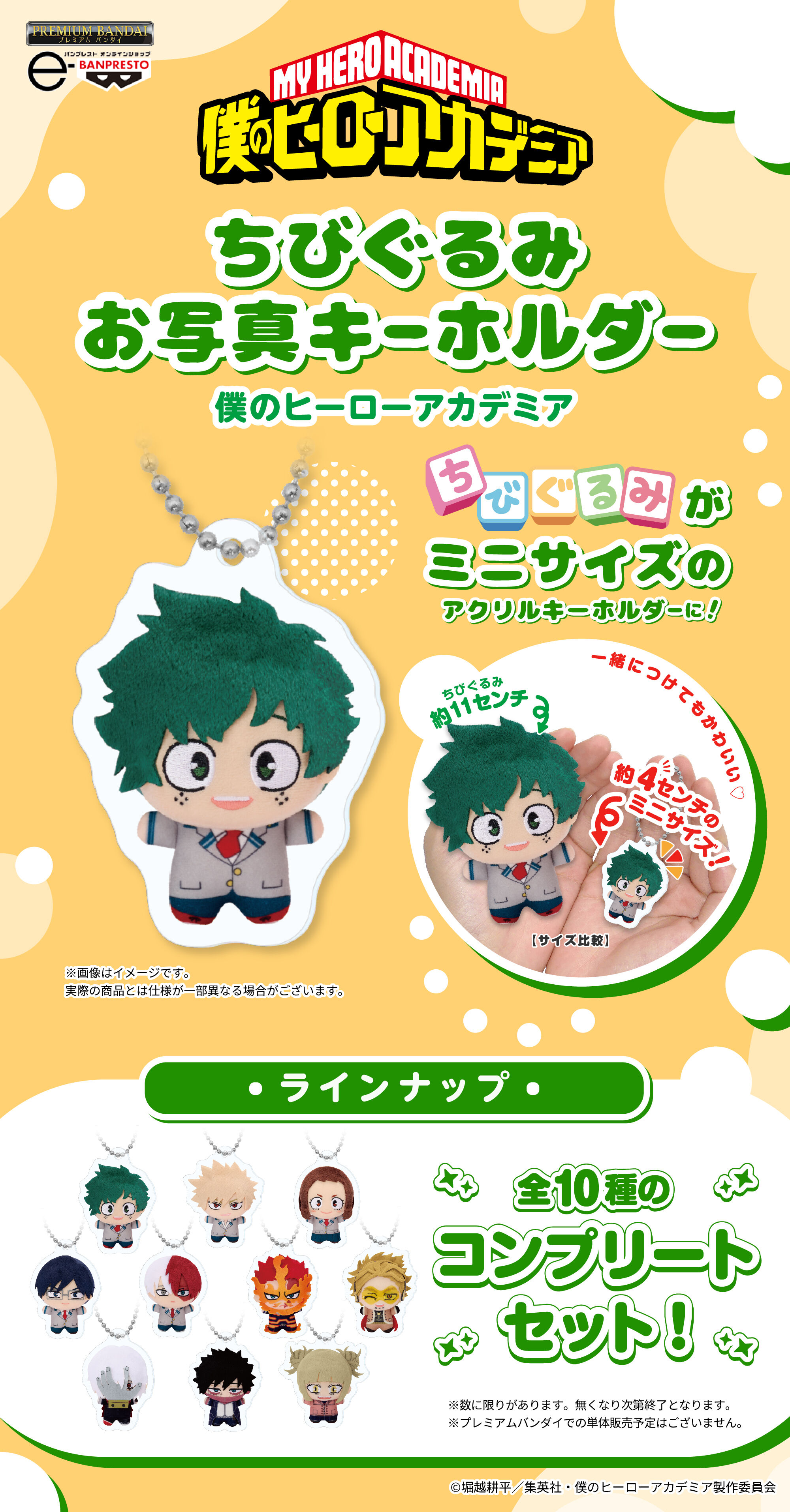 ちびぐるみのお写真がミニサイズのアクリルキーホルダーになって登場! サイズ約4pのミニサイズで、ちびぐるみと一緒につけてもかわいいです。 全種入ったコンプリートセットです。 【セット内容】 ちびぐるみお写真キーホルダー…10種 【製品素材】 アクリル樹脂 【サイズ】 縦幅約4cm 【ご注文受付数】 1注文につき1個まで 【対象年齢】 8歳以上 【生産エリア】 日本 【ご購入前に必ずご確認ください】 ※実際の商品とは多少異なる場合があります。 ※彩色などの外観は、商品個々で多少のバラツキが生じる場合があります。 ※商品仕様や発送日は予告なく変更になる場合があります。 ※注文期間は予告なく変更となる場合があります。 ※在庫数に達した時点で、ご注文の受付を終了させていただく場合があります。 また、ご要望が多数の場合は、再度受付を行う場合があります。 ※本商品はイベント、一部店舗、海外で販売の可能性があります。 ※本商品はアミューズメント景品としての展開予定はございません。 |